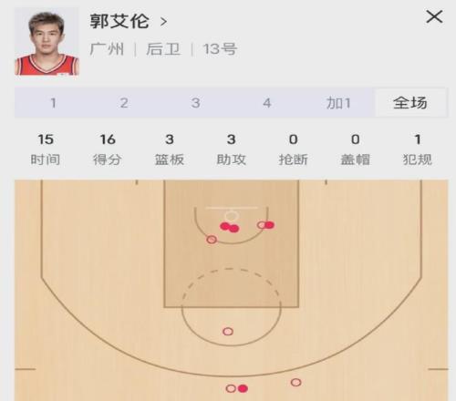 对阵青岛男篮,郭艾伦替补出战18分钟左右,14投7中拿下19分3篮板2助攻,尽管最后关头的罚球丢了一个,但并不影响广州龙狮男篮涉险过关。